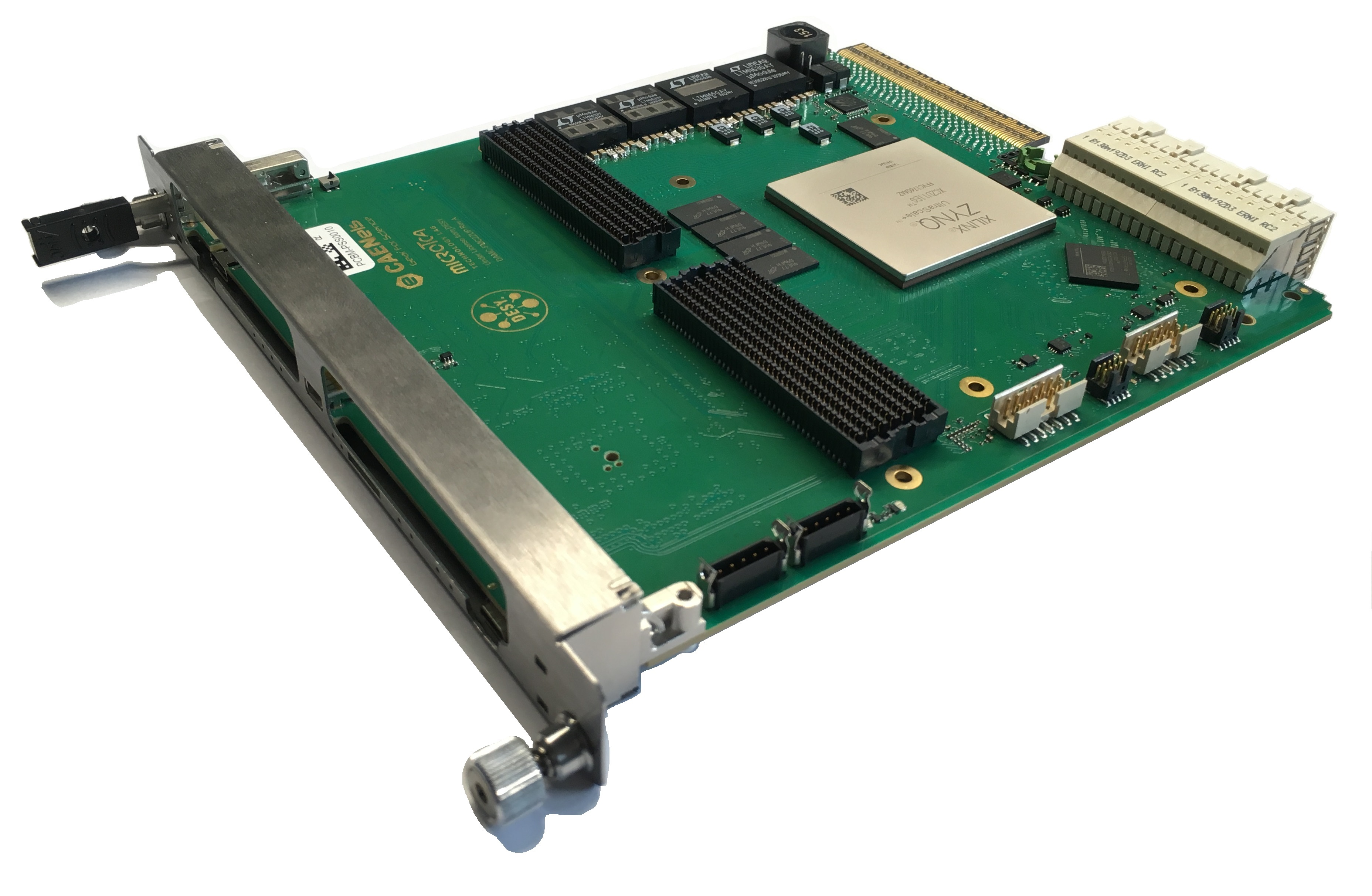 The ARM Cortex-A53 processor in the MPSoC can run GNU/Linux from a MicroSD card on the front panel or from an embedded 8GB eMMC. The Processing System is equipped with an USB Type-C interface at the front panel that supports alternate mode. The alternate mode allows to connect to a Display and provides an USB 3.0 interface at the same time, providing the possibility to omit CPU boards in MTCA systems.